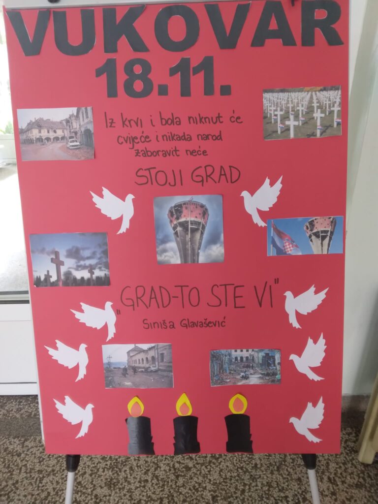 Učenici OŠ Tina Ujevića Vitina uključili su se obilježavanje Dana sjećanja uz prigodne tematske panoe koje su izradili u prostorijama škole ali i snimanjem simbolične fotografije oformivši svojim tijelima Vitina- oblik srca – Vukovar.