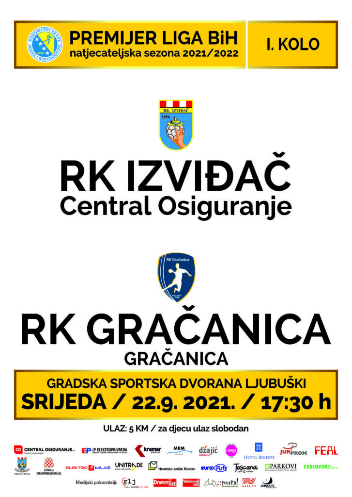 Utakmica između rukometaša Izviđač Central osiguranja i Gračanice igra se u Gradskoj športskoj dvorani u Ljubuškom u srijedu, 22.09.2021. godine s početkom u 17,30 sati.