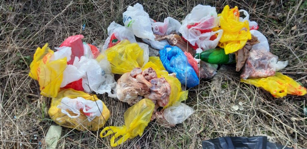 Kako se može vidjeti, uz razne prazne boce i plastiku, netko je u prirodu odlučio baciti i veći broj guma, te meso.