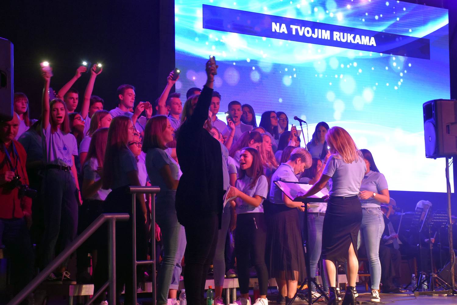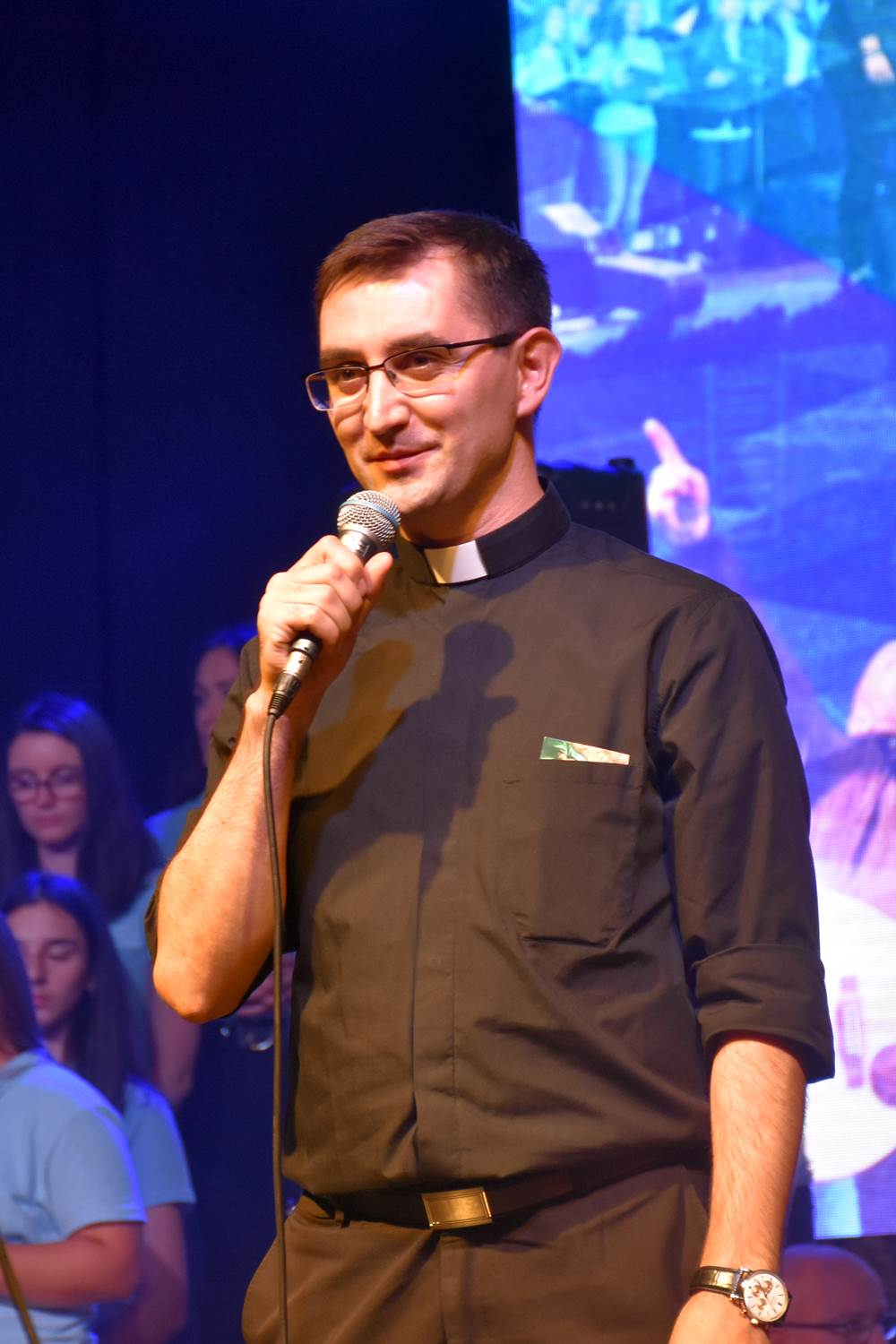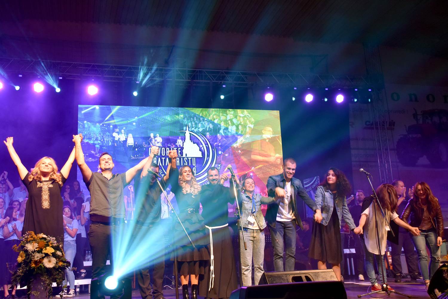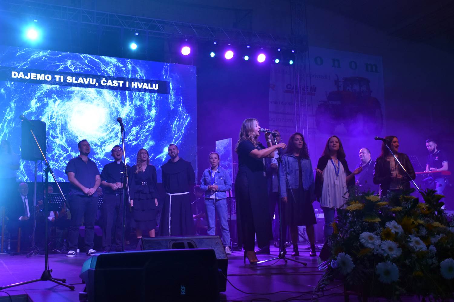 U prvom dijelu programa održan je koncert duhovne glazbe, na kojem su nastupili: Rafael Dropulić Rafo, fra Marin Karačić, Marko Marić, Stjepan Lach, Hanna Pölhe, Vanessa Mioč, sestre Halužan (Klara, Katarina i Magdalena) i Marija Husar Rimac. Kao prateći vokali zajedno s navedenim izvođačima nastupili su mladi iz više župa Požeške biskupije okupljeni u Biskupijski zbor mladih pod ravnanjem Marije Milinković. Izvođače su na instrumentima pratili glazbenici duhovnog benda „Srce Isusovo“ iz Zagreba: Mario Klarić (bubnjevi), Andrej Grozdanov (električna gitara), Marijo Bilić (bas gitara) i Stjepan Habunek (klavijatura). Voditelji koncerta bili su Lea Glasnović i Rafael Dropulić Rafo.