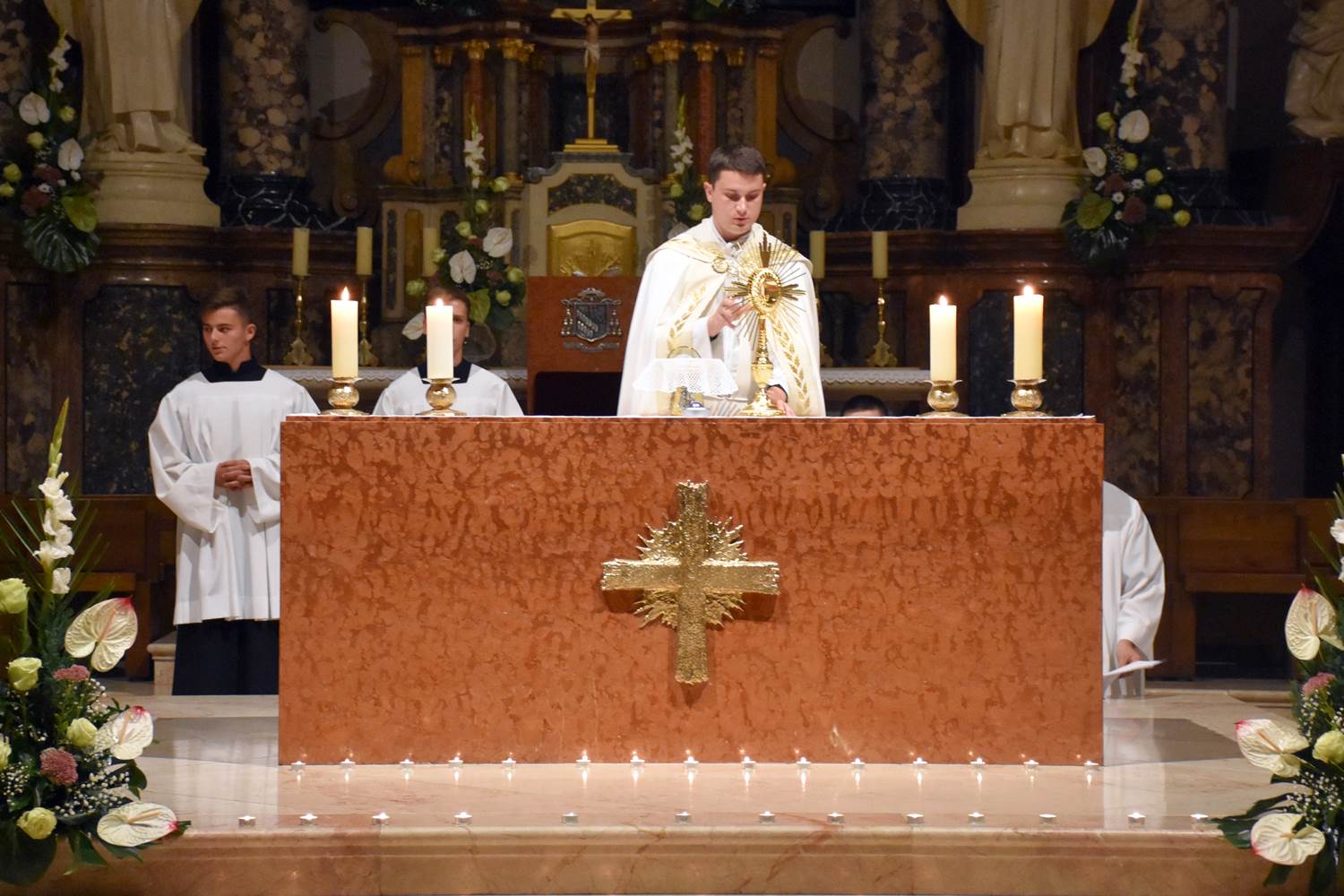 Nakon programa u sportskoj dvorani, mladi su se uputili u obližnju požešku Katedralu na euharistijsko klanjanje, koje je predvodio Matej Filipović, župni vikar katedralne Župe sv. Terezije Avilske.