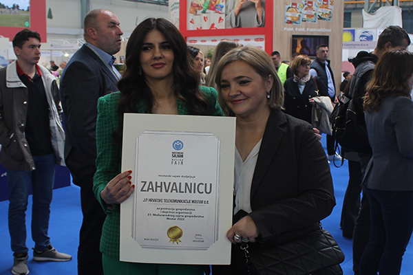 Potvrđeno je to priznanjem i zahvalnicom za promociju gospodarstva i doprinos organizaciji 23. Međunarodnog sajma gospodarstva Mostar 2022. koje je direktorici Korisničke podrške HT Eroneta, inače koordinatorici ovogodišnjeg sajamskog nastupa Tei Bešlić Barišić, uručila direktorica Sajma Dalfina Bošnjak.