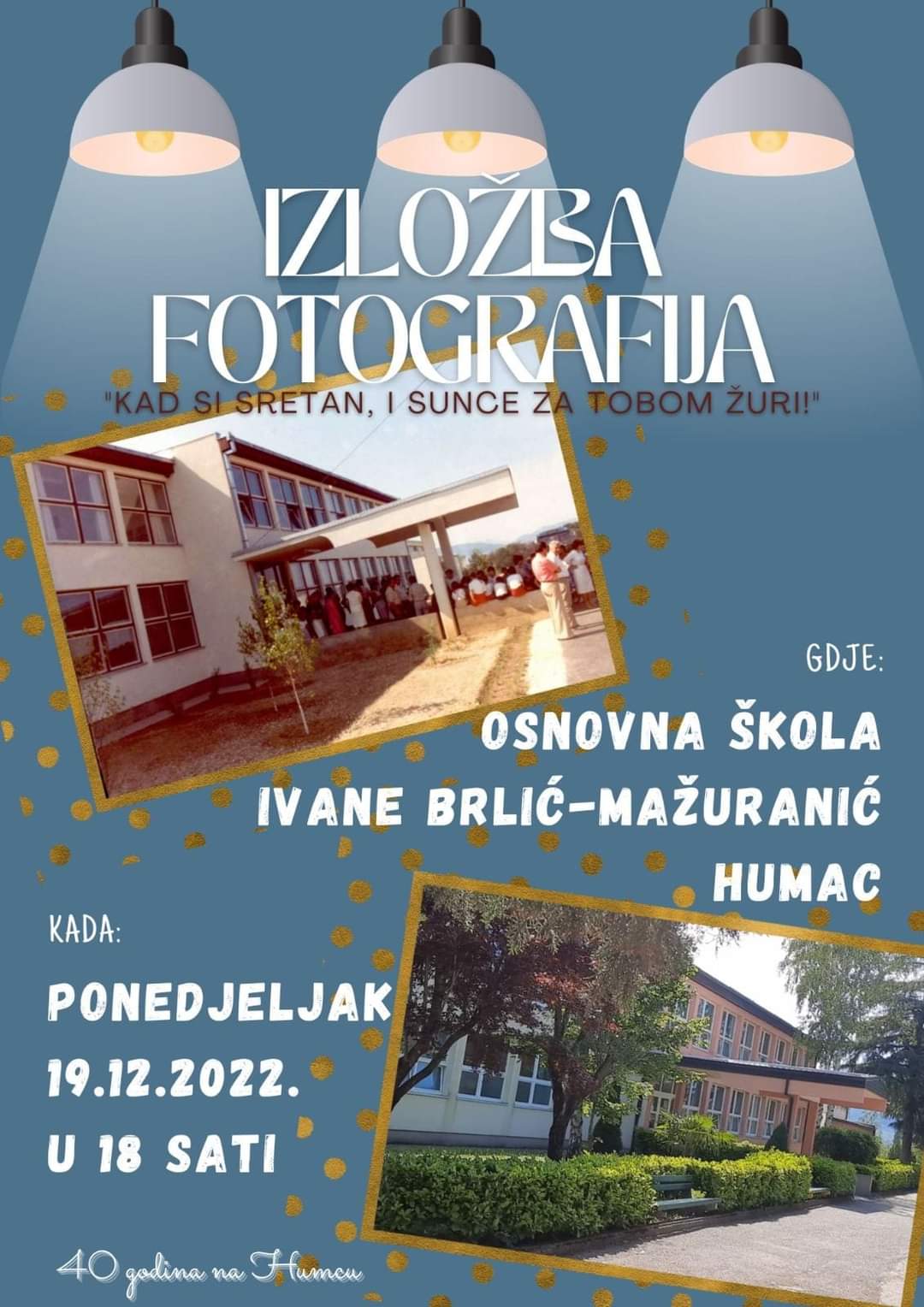 “Pozivamo sve bivše i sadašnje učenike, djelatnike svih godinica, prijatelje i sve žitelje naše općine da dođu na otvaranje izložbe fotografija povodom 40 godina naše škole.