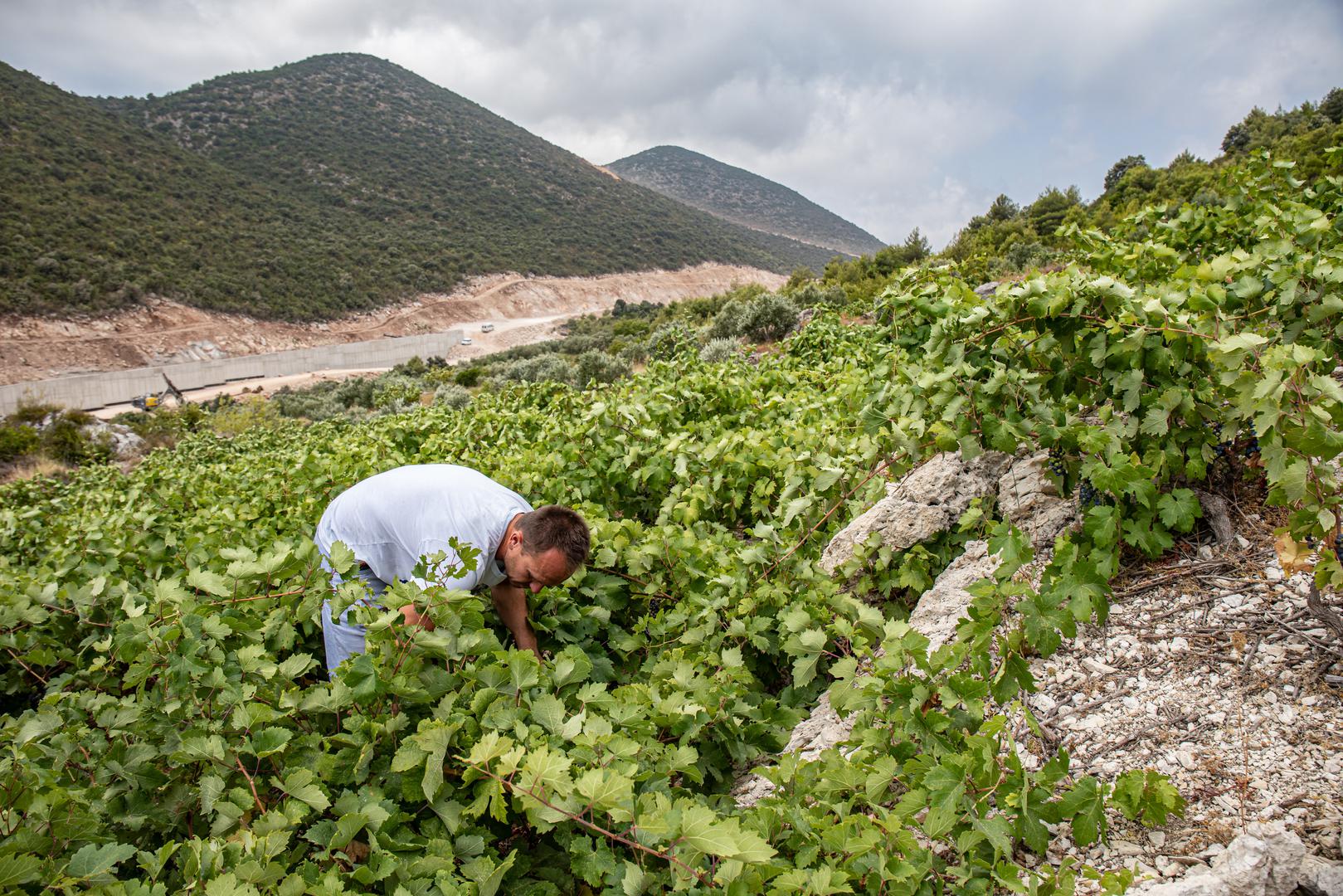 – Nikakve strojeve ne možemo upotrebljavati zbog strmog i šljunkastog tla. Malo gdje se radi tako kao na Pelješcu – govori Ante vodeći nas starim Napoleonovim putem do mjesta odakle se kao na dlanu vide pelješki vinogradi. Spuštamo se zatim do jednog od njegovih u kojem je na strmom terenu posađen plavac mali. Za razliku od vinograda u ostatku Hrvatske gdje su uz čokote u zemlju zabodeni barem kolci uz koje se loza privezuje, ako već vinograd nije uređen tako da su u njemu stupovi i žica, loza se na Pelješcu ubode u zemlju. Nema ni stupova ni žice ni kolaca, loza se spušta po tlu pa se u berbi treba dobro sagnuti. Kako bi se zaustavilo odronjavanje tla zbog jakih kiša, Marlaisovi su napravili suhozide. Imaju vinograde stare i 60-70 godina i u njima su maksimalni prinosi, do kilograma po trsu. Njihovi su mladi vinogradi oni do 25 godina.