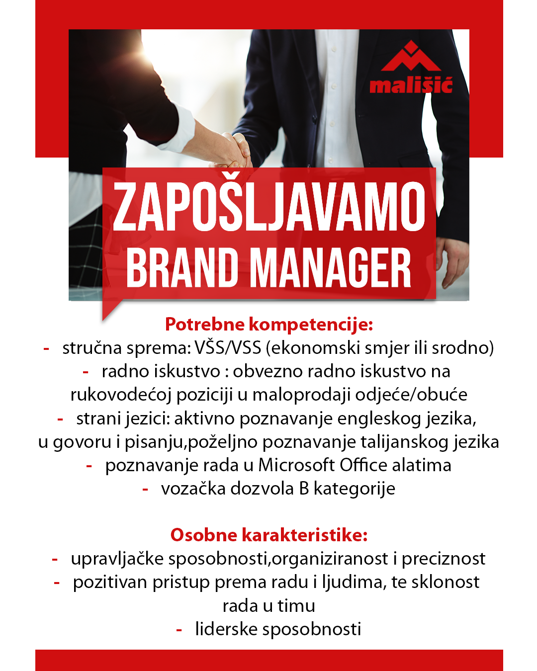 BRAND MANAGER (m/ž) – 1 izvršitelj