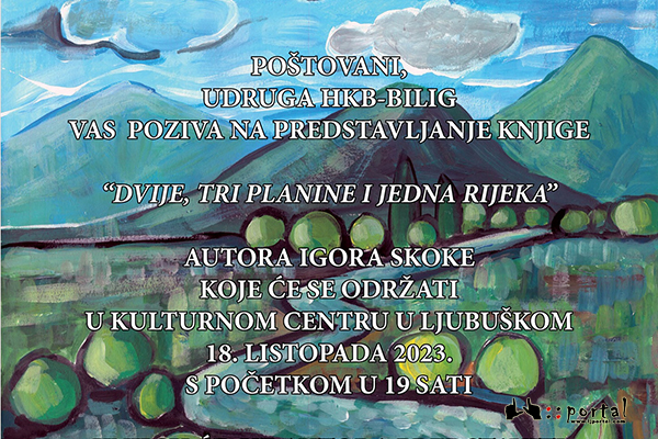Udruga Bilig poziva na predstavljanje knjige “Dvije, tri planine i jedna rijeka” autora Igora Skoke koje će se održati u Kulturnom centru u Ljubuškom 18. listopada 2023. s početkom u 19 sati.