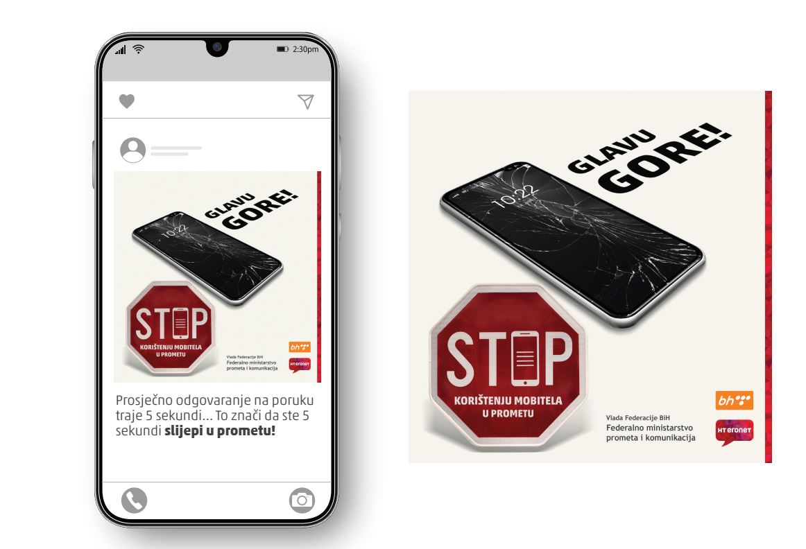 Predstavnica BH Telecoma Nađa Lutvikadić – Fočo kazala je da je kampanja posebno usmjerena ka mlađoj populaciji koja u dosta većoj mjeri koristi mobilni telefon, te da je „Glava gore“ ključni slogan kampanje čiji je cilj – sačuvati živote i zdravlje sudionika u prometu.