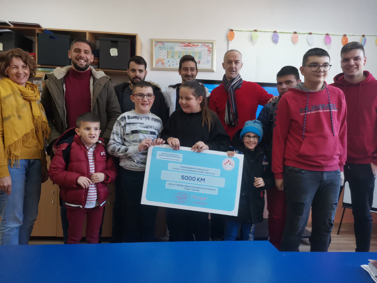 Danas su prikupljena sredstva službeno uručena udruzi „Duga“. Od prikupljenih sredstava sa turnira „Suci humanitarci“ donirano je 5 000 KM Udruzi roditelja i djece sa posebnim potrebama „Duga“ Ljubuški, te po 1 000 KM za dječaka Andija iz Mostara i u kruh sv. Ante Humac.