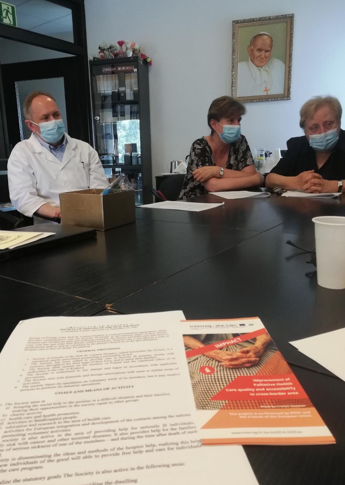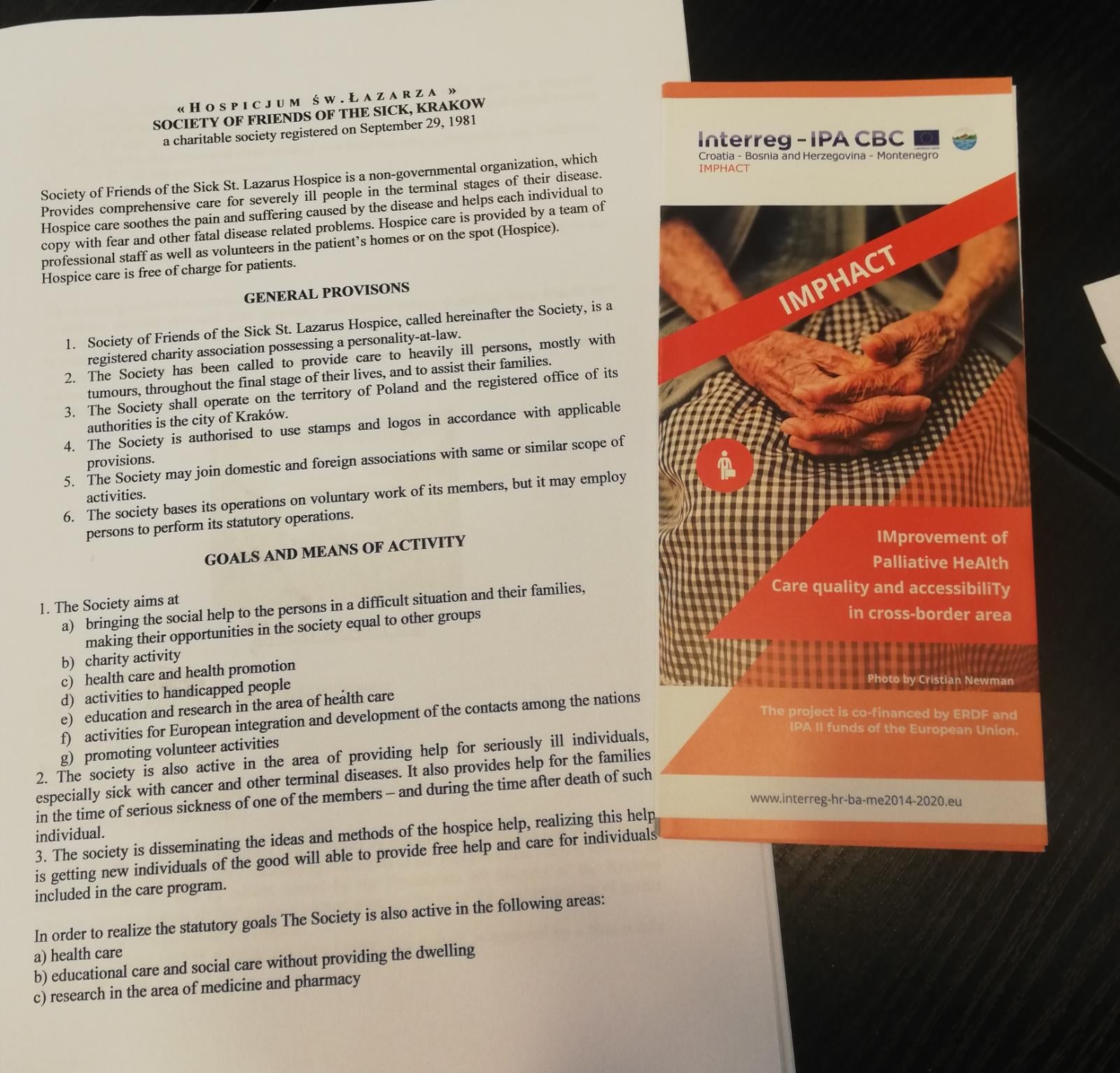 Predstavnici projektnih partnera su se kroz interaktivnu komunikaciju tijekom studijskog posjeta, upoznali sa organizacijom palijativne skrbi u Hospiciju sv. Lazara koja traje oko 40 godina, kao i cjelokupnom organizacijom palijativne skrbi u Poljskoj te svim postupcima i procedurama koji se koriste za palijativne bolesnike. Nakon radnog dijela posjeta, organiziran je obilazak ustanove.