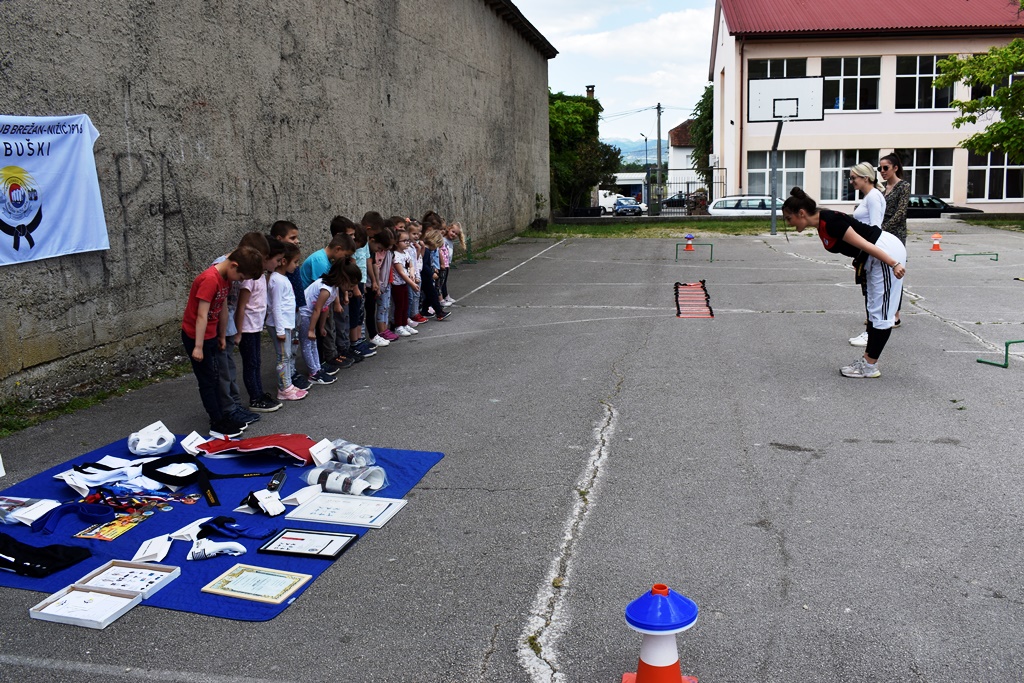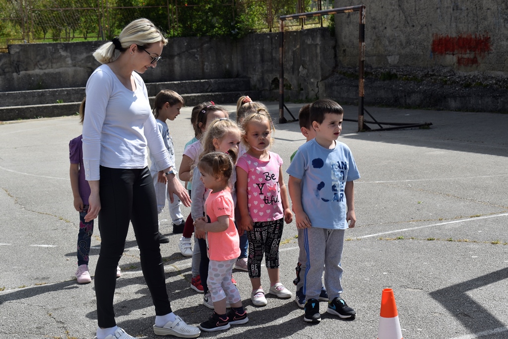 Na igralištu O.Š. „Tina Ujevića“ dvije grupe djece iz Gradskog vrtića – podružnica Vitina u pratnji i uz asistenciju svojih „teta“ upijale su pokrete trenerice Vlatke Živkušić koja je neumorno pokazivala pokrete i ukazivala što treba uraditi.