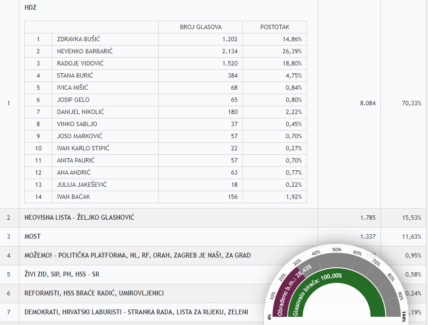 U 21 sat je obrađeno 15,7 biračkih mjesta u inozemstvu, a ovo su rezultati: