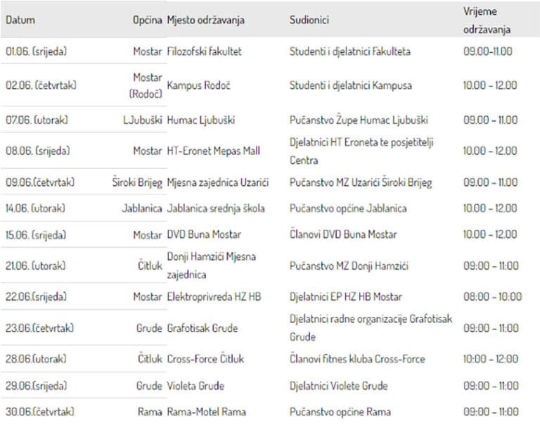 Plan akcija dobrovoljnog darivanja krvi za lipanj: