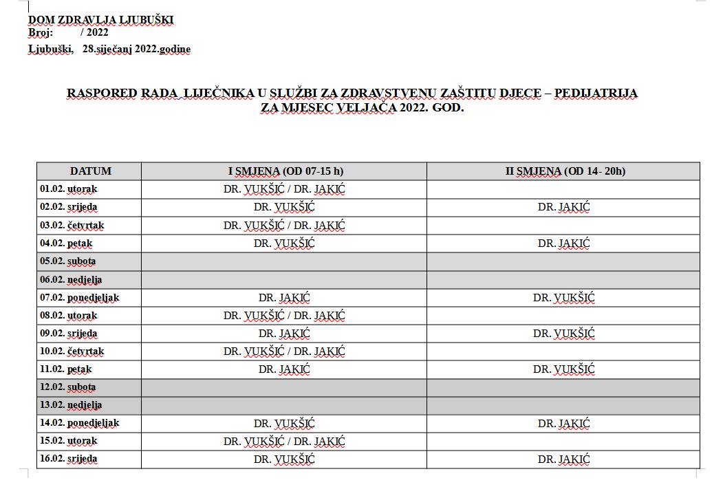 01.02.2022 Društvo Raspored rada liječnika na pedijatriji za mjesec veljaču 2022.god. velj 1, 2022Slovojed