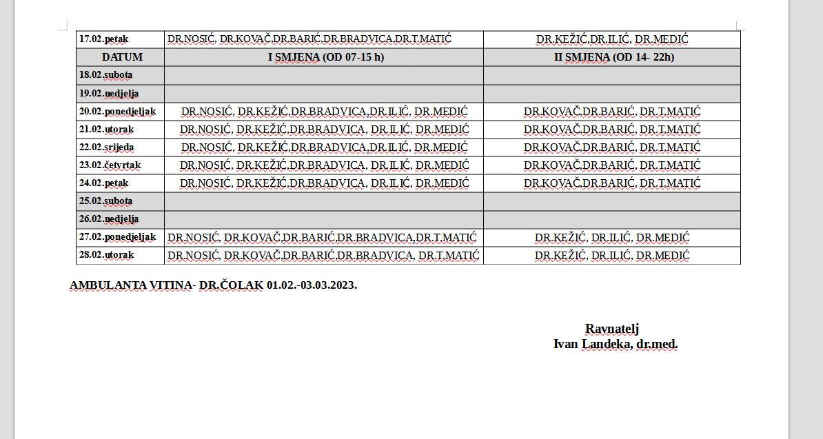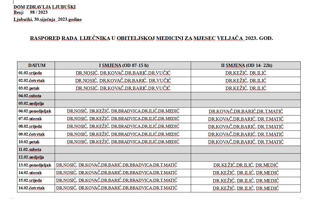 01.02.2023 Obavijesti Raspored rada liječnika u obiteljskoj medicini za mjesec veljača 2023. god. velj 1, 2023Slovojed