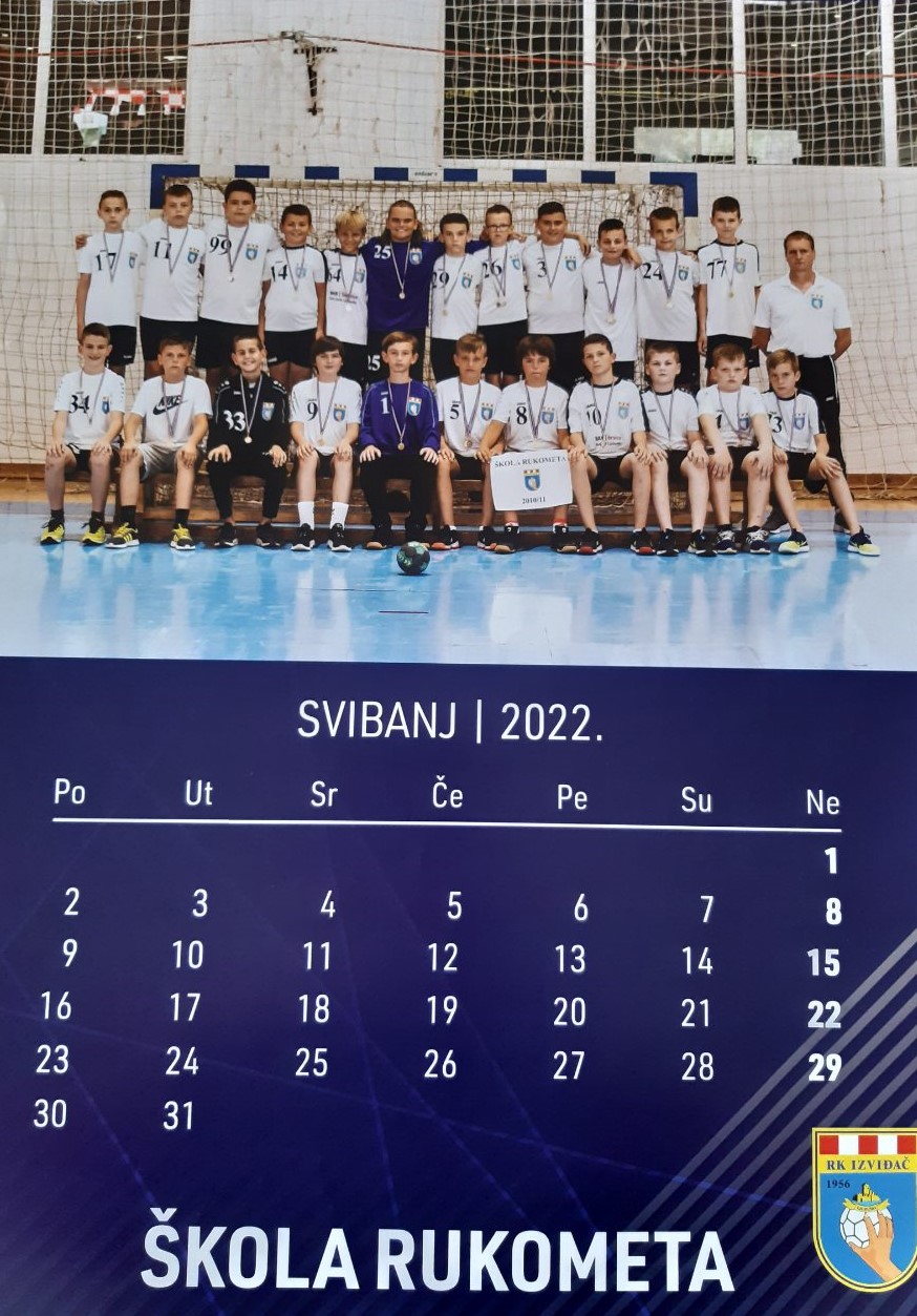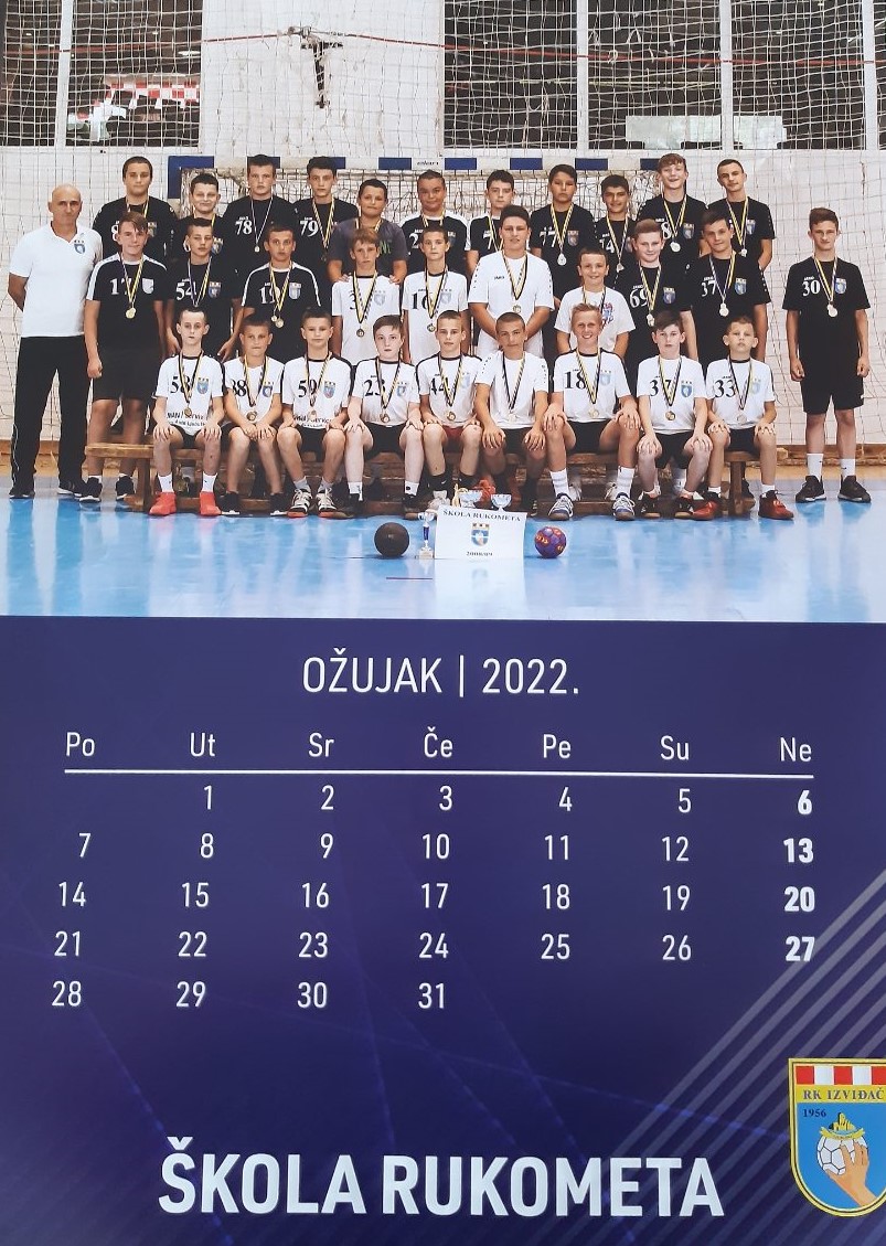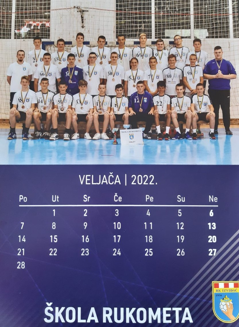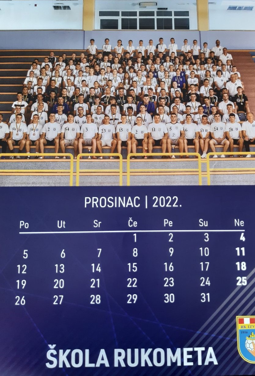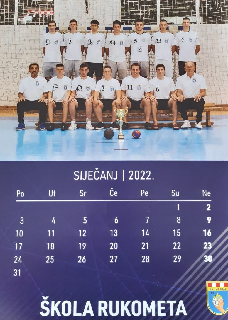 Na naslovnoj strani kalendara su sve generacije škole rukometa u sezone 2021/22. zajedno sa svojim trenerima, a ista slika se nalazi i u završnom mjesecu PROSINCU.