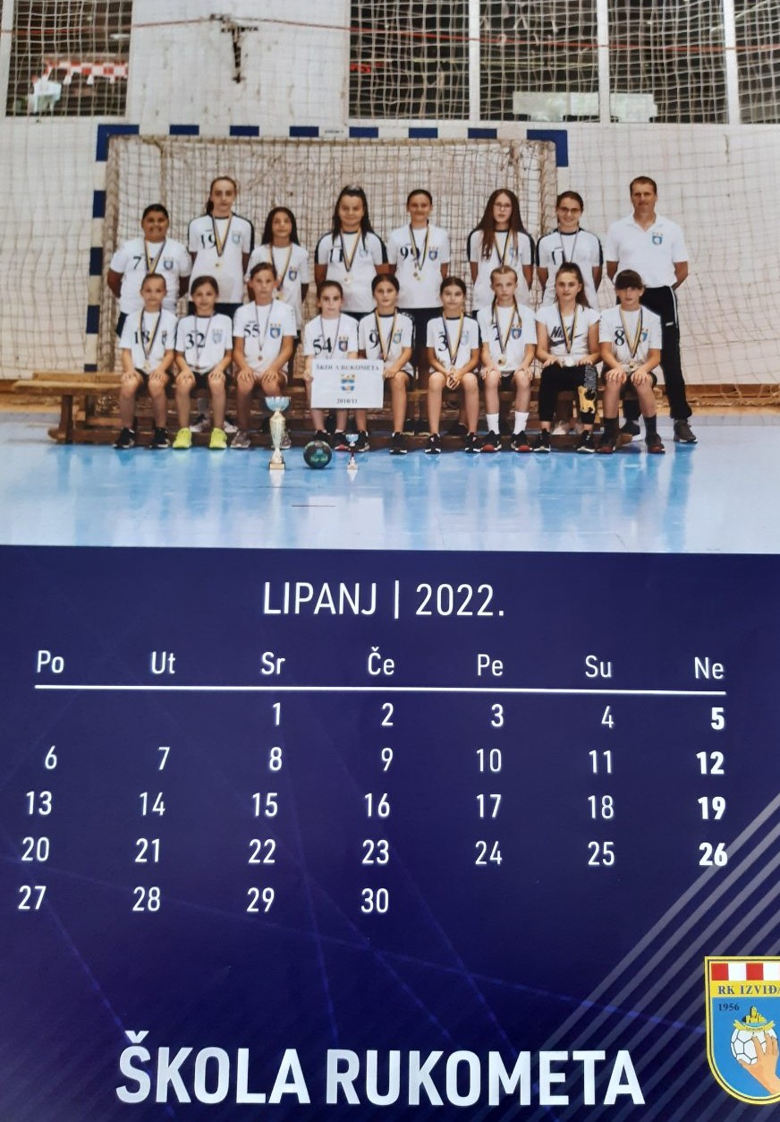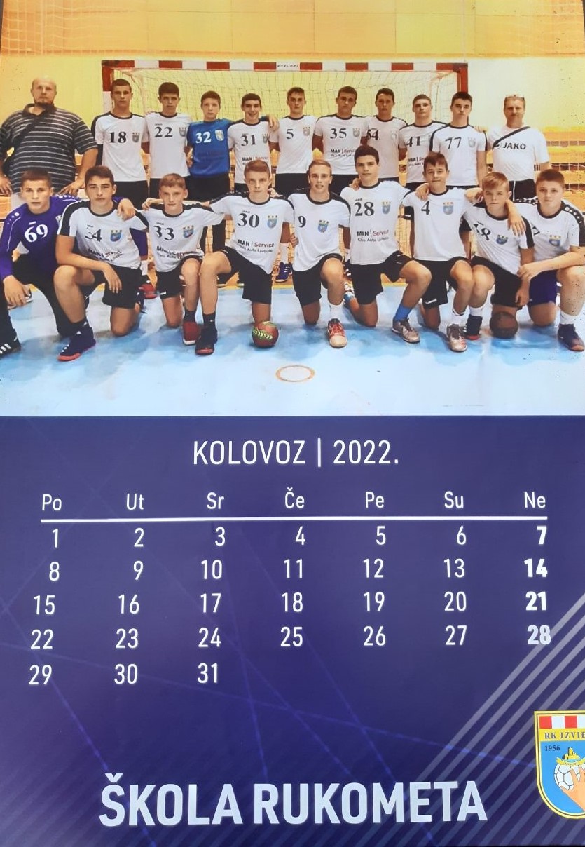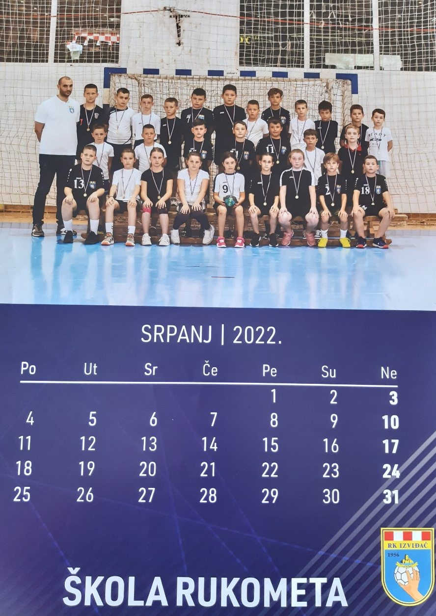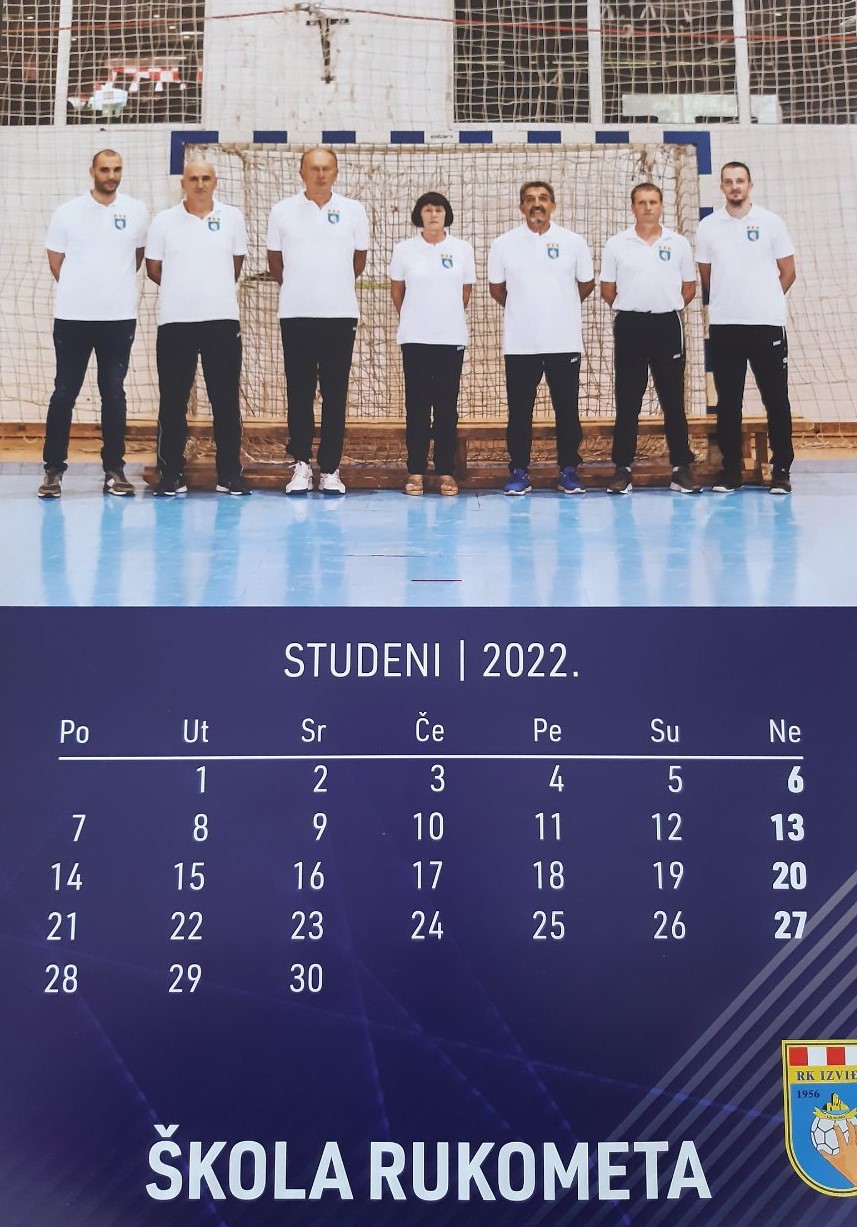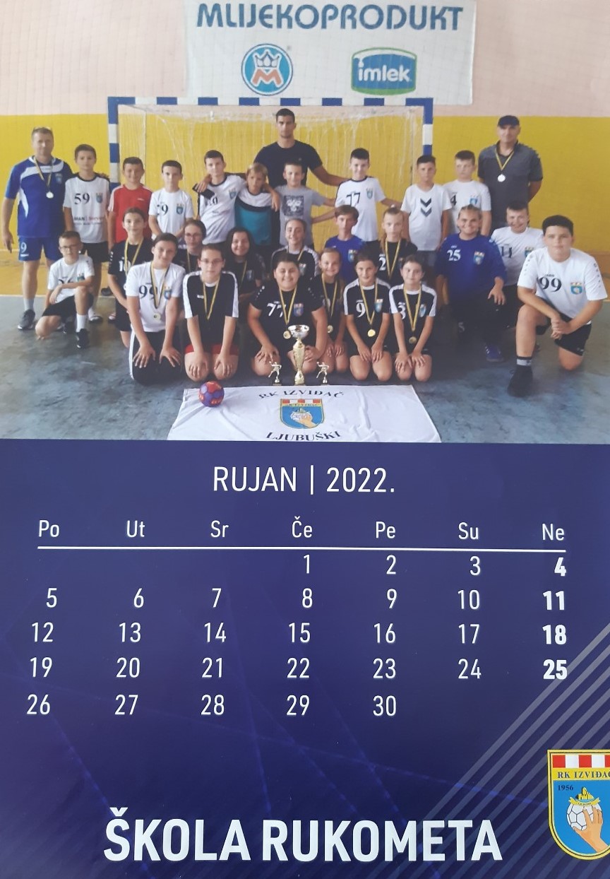 Na naslovnoj strani kalendara su sve generacije škole rukometa u sezone 2021/22. zajedno sa svojim trenerima, a ista slika se nalazi i u završnom mjesecu PROSINCU.