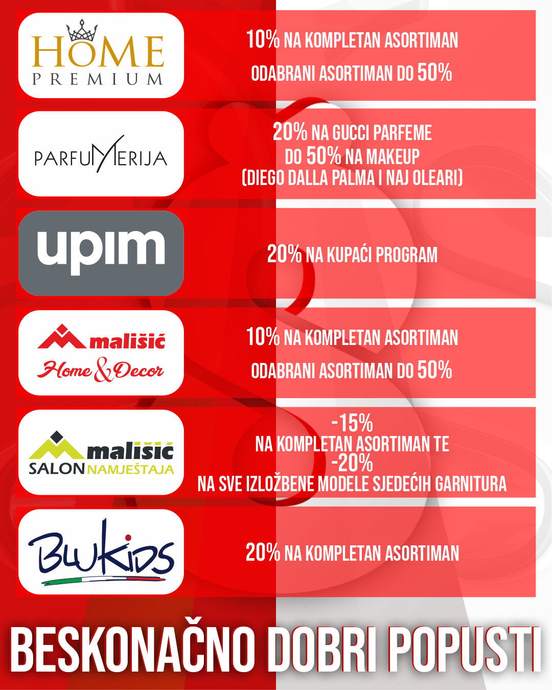 Ove srijede,08.lipnja ne propustite posjetiti prodajni centar Mališić Međugorje jer pred nama je još jedna Sretna Osmica – dan odličnih popusta i pogodnosti.