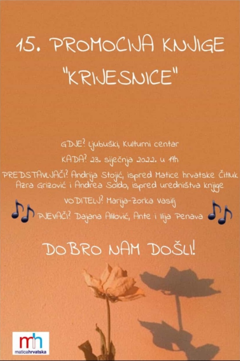 U nedjelju 23. siječnja, s početkom u 19 sati, u Kulturnom centru u Ljubuškom, bit će predstavljena knjiga „Krijesnice“.