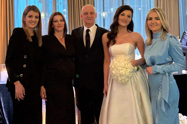 Mladenkina kuma inače je unuka Franje Tuđmana, a na fotografiji sa svadbe može se vidjeti Rojsa kako pozira je pored svoje četiri kćeri.