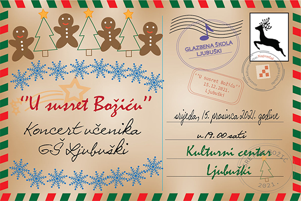 Večeras s početkom u 19 sati u Kulturnom centru u Ljubuškom održati će se tradicionalni učenički koncert “U susret Božiću” kojeg organizira Glazbena škola Ljubuški.