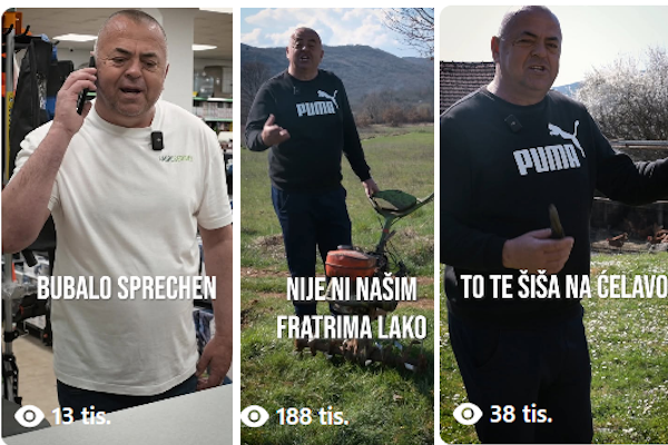 „Hoćete li mi vjerovati da sve to znam, jer kupujem sjeme, gnojivo, što god mi treba za kuću“, prekida nas usred pitanja o tome kako nastaju kampanje. Kaže da je od djetinjstva, dok je „njegova majka pisala po papiru“, sam išao u takve kupnje.