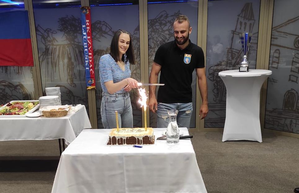 Stjepan Primorac, direktor hotela za prvake BiH u rukometu osim hrane i pića pripremio je i slavljeničku tortu koju su prerezali Matea Šumelj, kapetanica ženske ekipe i Domagoj Alilović, kapetan muške ekipe.