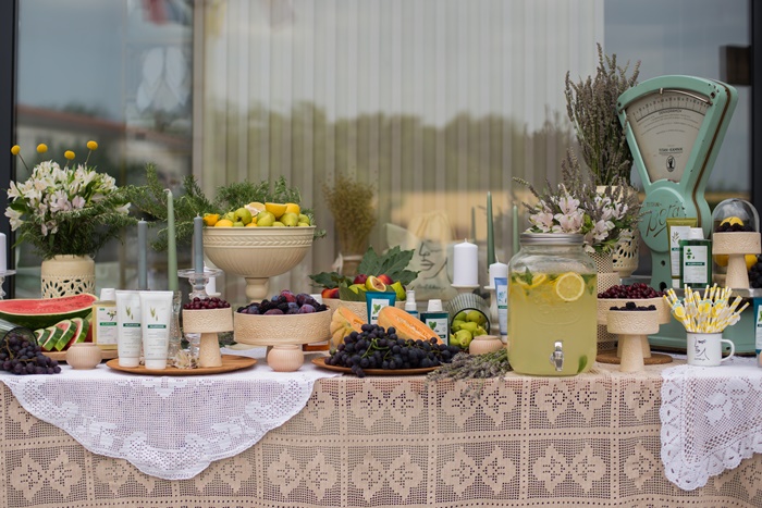 Za dekoracije na eventu je bila zadužena naša čarobnica Peek a Bloom. Uvijek nadmaši sva očekivanja. Helena je na našem photo pointu savršeno ukomponirala voće kao simbol zdravlja i zdravog načina života s mirisnim notama lavande i ružmarina, a uz sve to dodala i dašak tradicije s ručno izrađenim stolnjacima naše bake Ljilje.